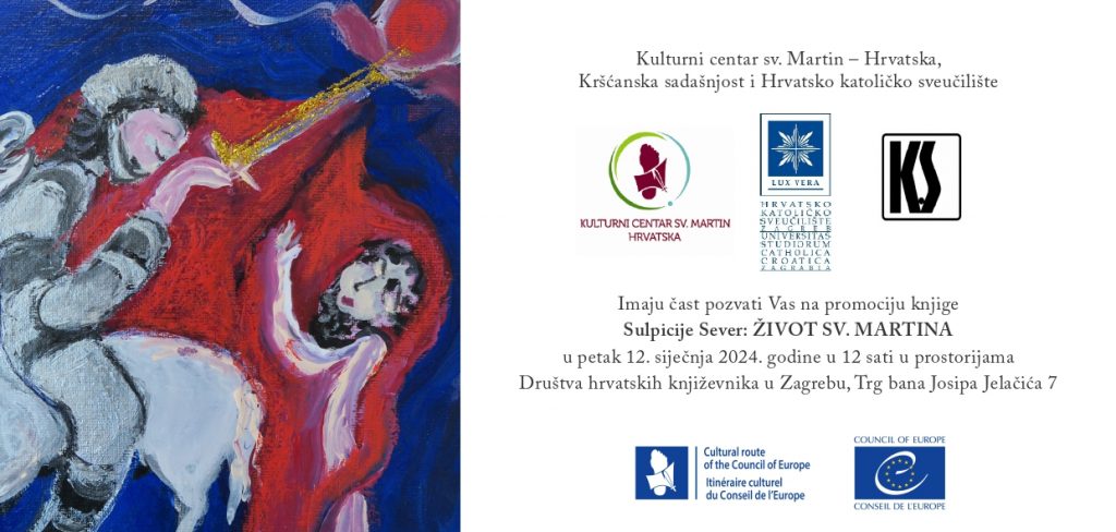 Kulturni centar sv. Martina, Kršćanska sadašnjost i Hrvatsko katoličko sveučilište organiziraju promociju knjige „Sulpicije Sever: Život sv. Martina“ u petak 12. siječnja u 12 sati u prostorijama Društva hrvatskih književnika u Zagrebu, Trg bana Josipa Jelačića 7.