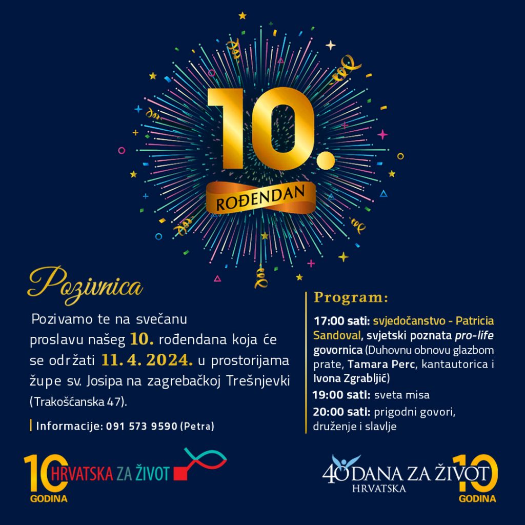 Udruga „Hrvatska za Život“ djeluje 10 godina, i iza sebe ima izuzetne plodove – više od 150 spašenih života od smrti pobačajem, više od 50 obitelji za koje konstantno brine, desetke žena koje su prošle program za iscjeljenje rana pobačaja, te mnoge druge projekte kojima grade kulturu života.