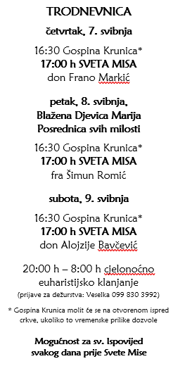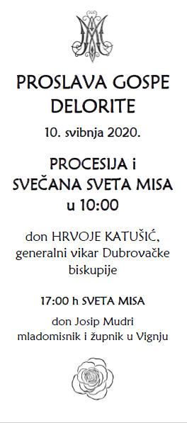 Kuna Pelješka, (IKA) – Blagdan Gospe Delorite svečano će se proslaviti u nedjelju 10. svibnja u samostanu u Kuni Pelješkoj. Svečanu procesiju i misu u 10 sati predvodit će generalni vikar Dubrovačke biskupije don Hrvoje Katušić. Misu u 17 sati slavit će župnik u Vignju don Josip Mudri.