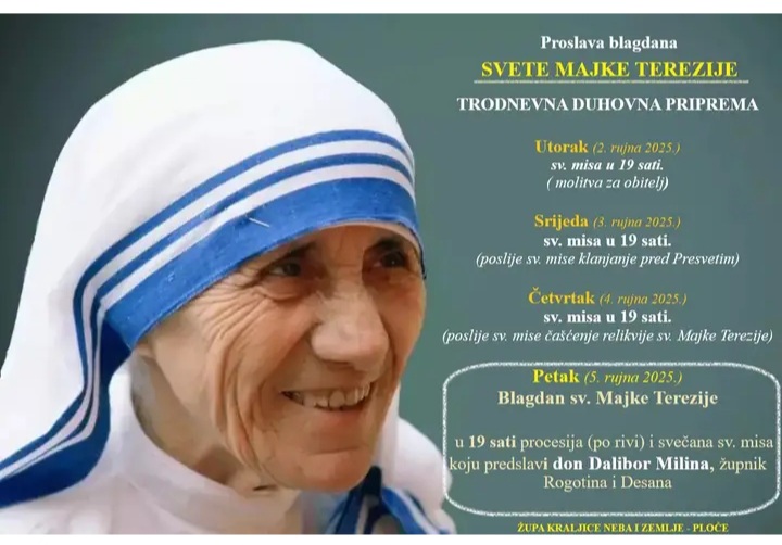 Župa Kraljice neba i zemlje u Pločama proslavlja blagdan suzaštitnice – sv. Majke Terezije, u petak 5. rujna.