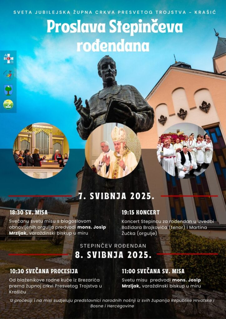 U Župi Presvetog Trojstva u Krašiću od 6. do 8. svibnja svečano će se proslaviti 127. rođendan blaženoga kardinala Alojzija Stepinca, mučenika i svjedoka vjere, uz bogat liturgijski i kulturni program koji će kulminirati svečanom procesijom i misnim slavljem u četvrtak, 8. svibnja, na sam dan njegova rođenja.