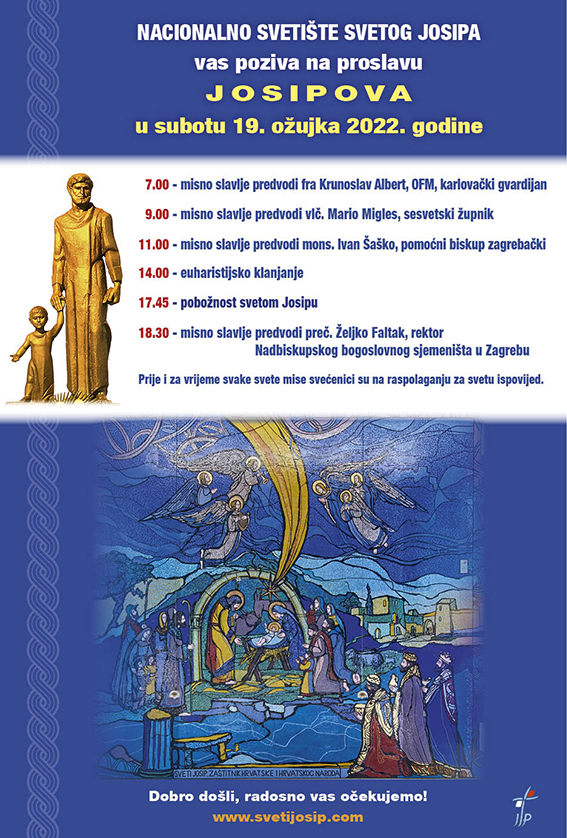 U Nacionalnom svetištu svetog Josipa u Karlovcu u subotu 19. ožujka slavi se svetkovina svetog Josipa. Svečanu prijepodnevnu misu u 11 sati predvodi mons. Ivan Šaško, pomoćni biskup zagrebački.