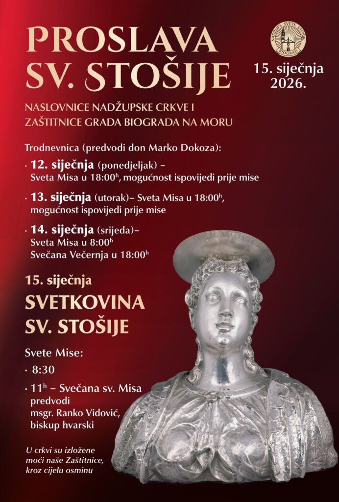 Svetkovina sv. Stošije, naslovnice nadžupske crkve i zaštitnice Biograda na Moru proslavit će se u četvrtak 15. siječnja. Misno slavlje u 11 sati predvodit će hvarski biskup Ranko Vidović. Misa je još u 8.30 sati.