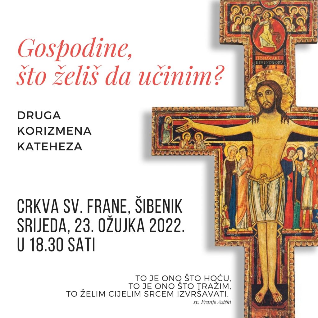 Druga kateheza „Gospodine, što želiš da učinim“ bit će održana u srijedu 23. ožujka. O raspelu iz crkvice sv. Damjana govorit će gvardijan i rektor Svetišta fra Ivan Bradarić.