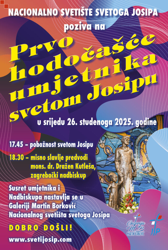 Prvo hodočašće umjetnika svetom Josipu održat će se u srijedu 26. studenoga. U svečevu nacionalnom svetištu u Karlovcu u 17.45 počet će pobožnost svetom Josipu. Misno slavlje u 18.30 predvodit će zagrebački nadbiskup Dražen Kutleša.
