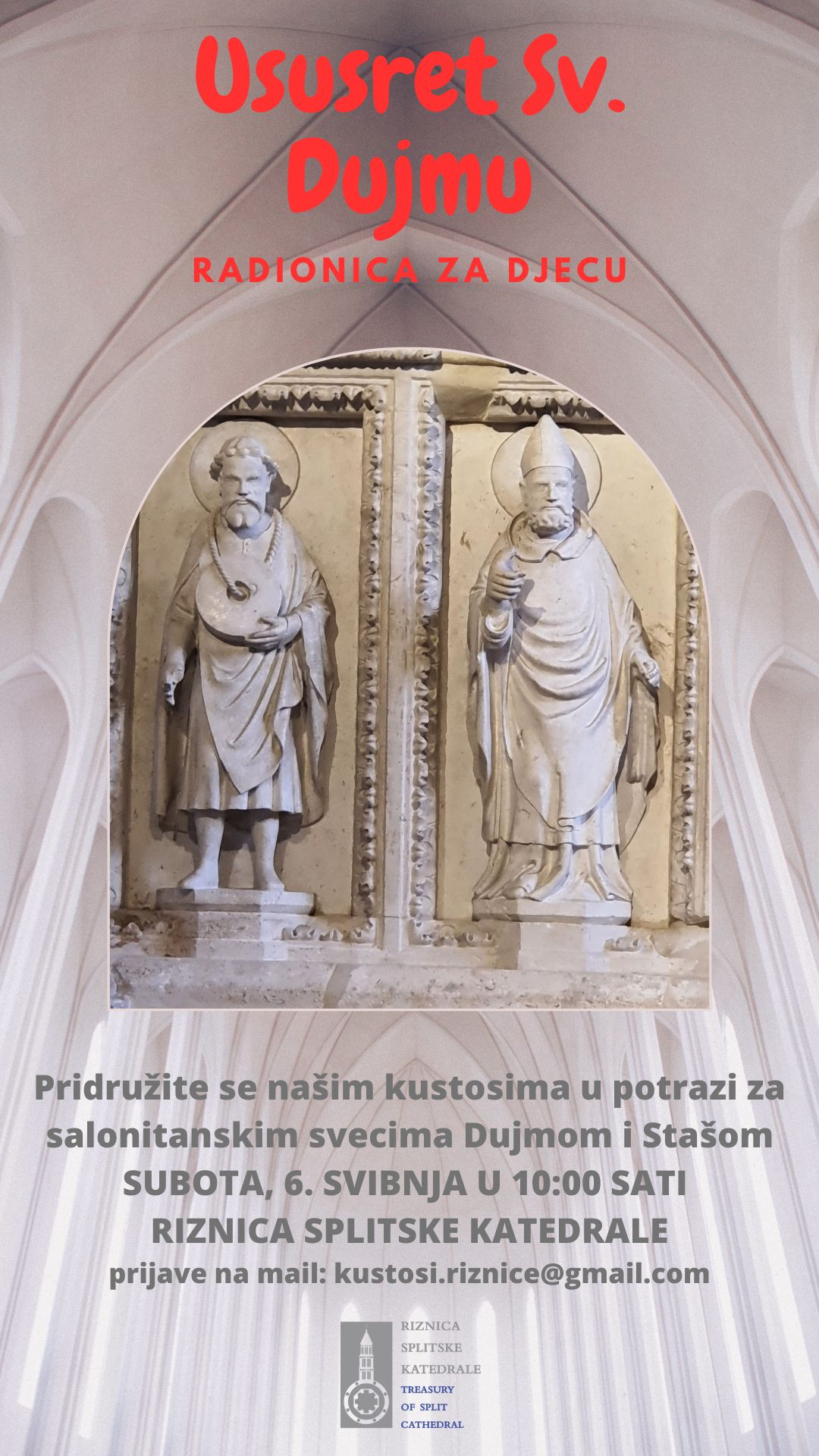 Radionica za djecu “Ususret sv. Dujmu” u Riznici splitske katedrale održava se 6. svibnja s početkom u 10 sati.
