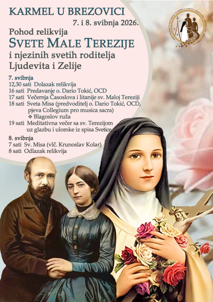 U Karmelu u Brezovici u četvrtak 7. i petak 8. svibnja održat će se duhovni susret povodom dolaska relikvija sv. Male Terezije i njezinih svetih roditelja Ljudevita i Zelije.