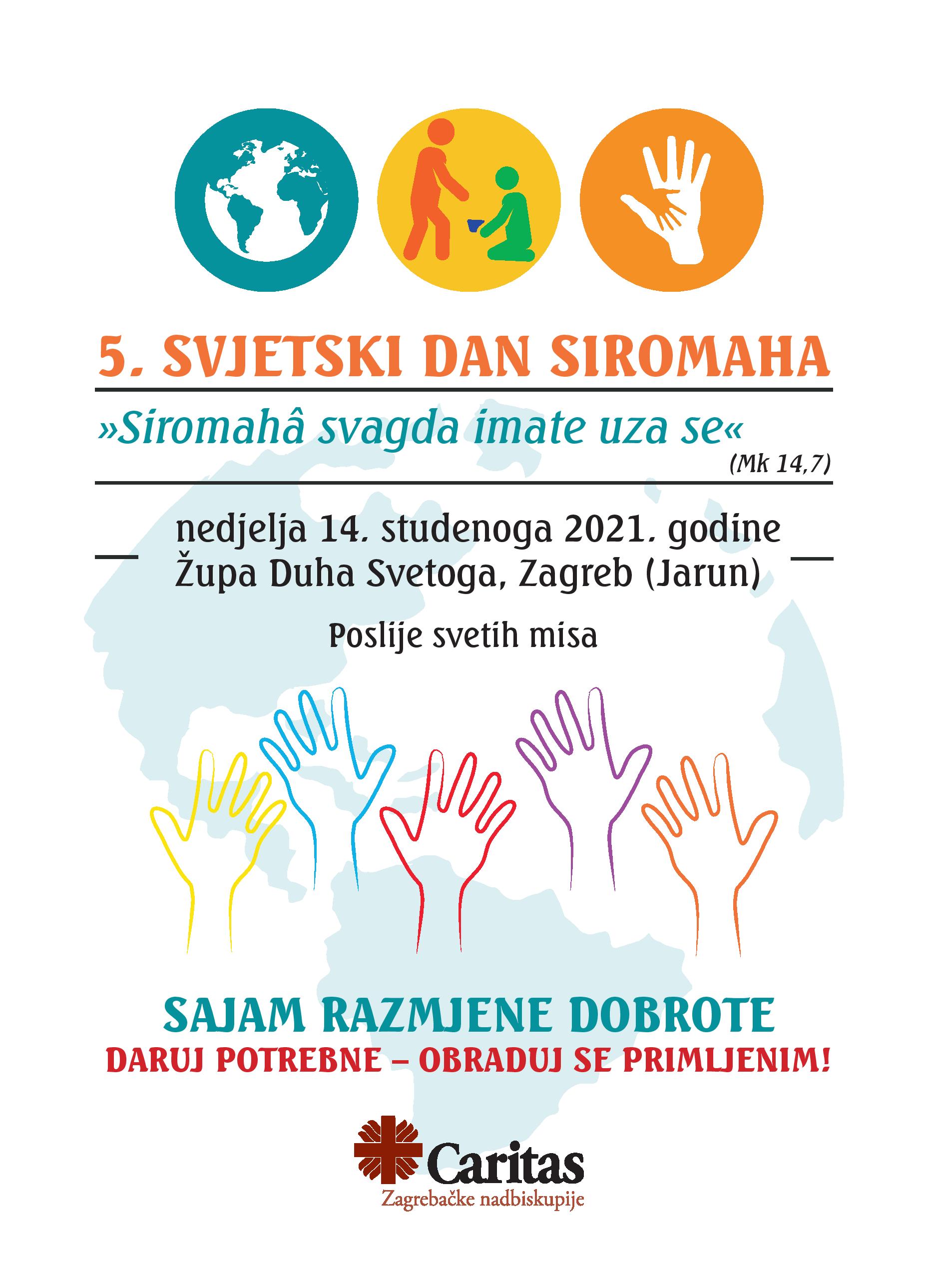 Zagreb, (IKA) – U povodu 5. svjetskog dana siromaha Caritas Zagrebačke nadbiskupije organizira u suradnji sa Župom Duha Svetoga sajam razmjene dobrote koji će biti održan u nedjelju 14. studenoga poslije misa u crkvi Sveta Mati Slobode na Jarunu.
