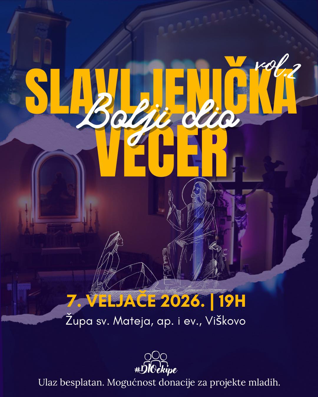 Mladi Župe sv. Mateja na Viškovu priređuju glazbeno-scenski događaj “Slavljenička večer” u subotu 7. veljače u 19 sati u župnoj crkvi sv. Mateja ap. i ev., pod geslom „Bolji dio“.