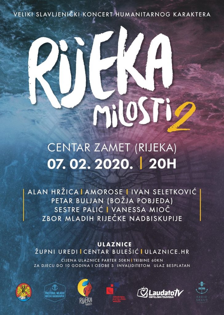 Rijeka, (IKA) – U petak 7. veljače u 20 sati u Centru Zamet, u organizaciji Ureda za pastoral mladih Riječke nadbiskupije, održat će se veliki slavljenički duhovni koncert humanitarnog karaktera pod nazivom “Rijeka milosti 2”. Prihod od prodanih ulaznica bit će doniran Domu za osobe s demencijom.
