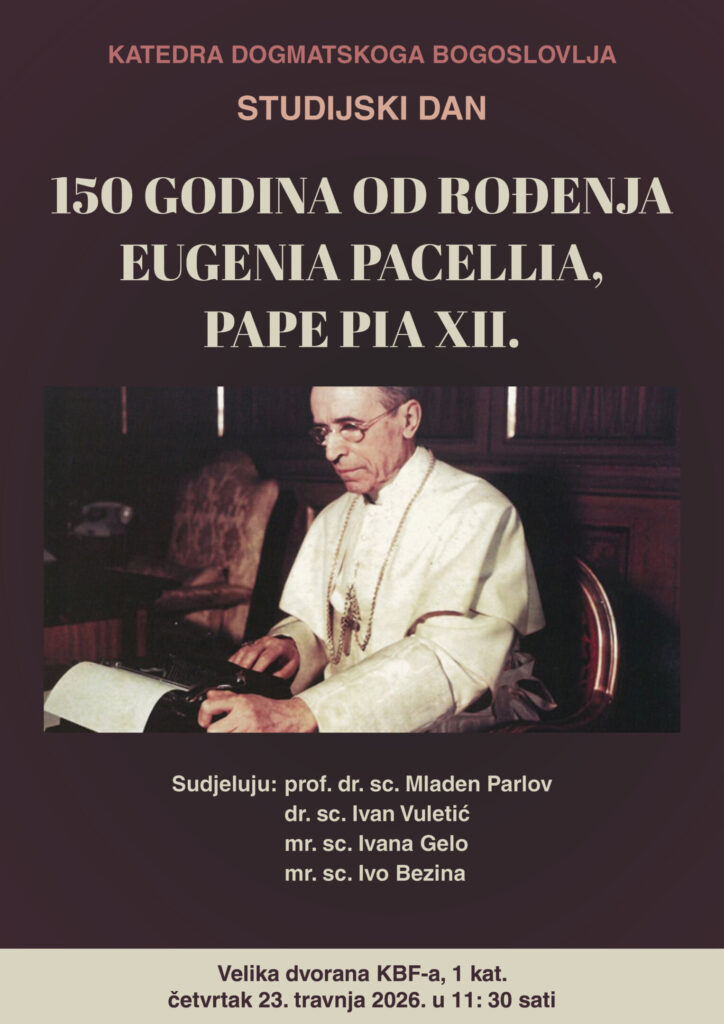 Povodom 150. obljetnice rođenja Eugenija Pacellija (pape Pija XII.), organizira se studijski dan pod nazivom „150 godina od rođenja Eugenia Pacellija, pape Pia XII.“ Događaj će se održati u četvrtak, 23. travnja, u 11:30 u Velikoj dvorani KBF-a (1. kat) u Splitu.