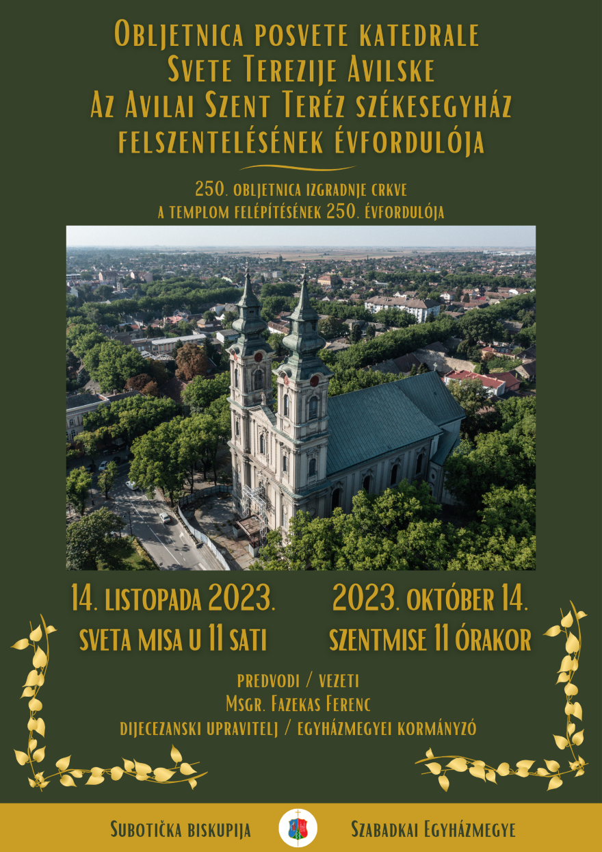 Obljetnica posvete katedrale Svete Terezije Avilske povodom 250. obljetnice izgradnje crkve održat će se 14. listopada. Misu u 11 sati predvodi dijecezanski upravitelj mons. Ferenc Fazekas.