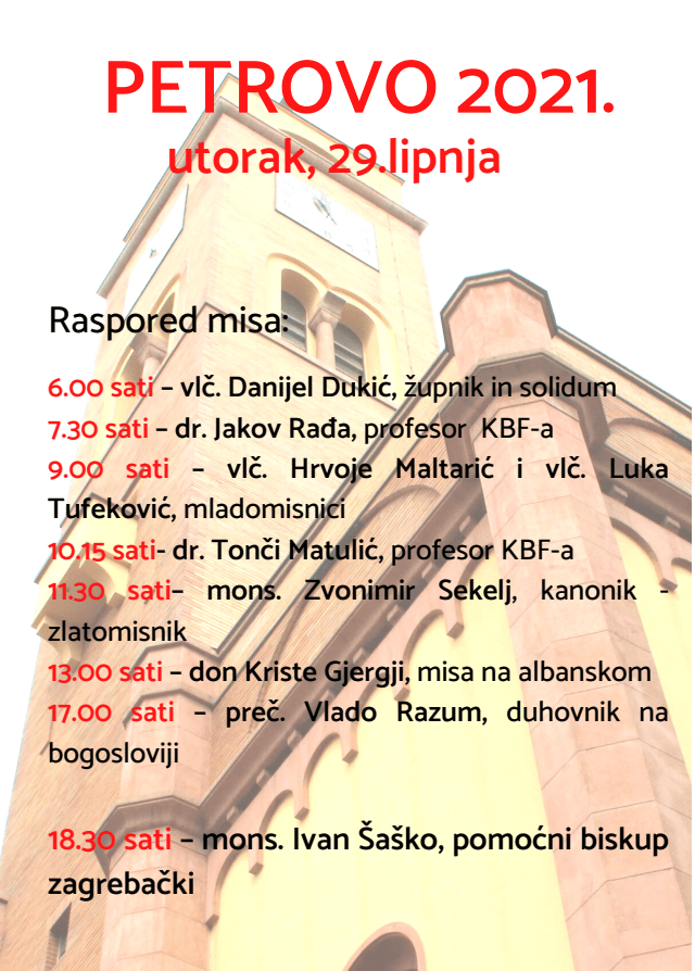 Župa sv. Petra u Zagrebu u utorak 28. lipnja svečano slavi svetkovinu sv. Petra i Pavla.
