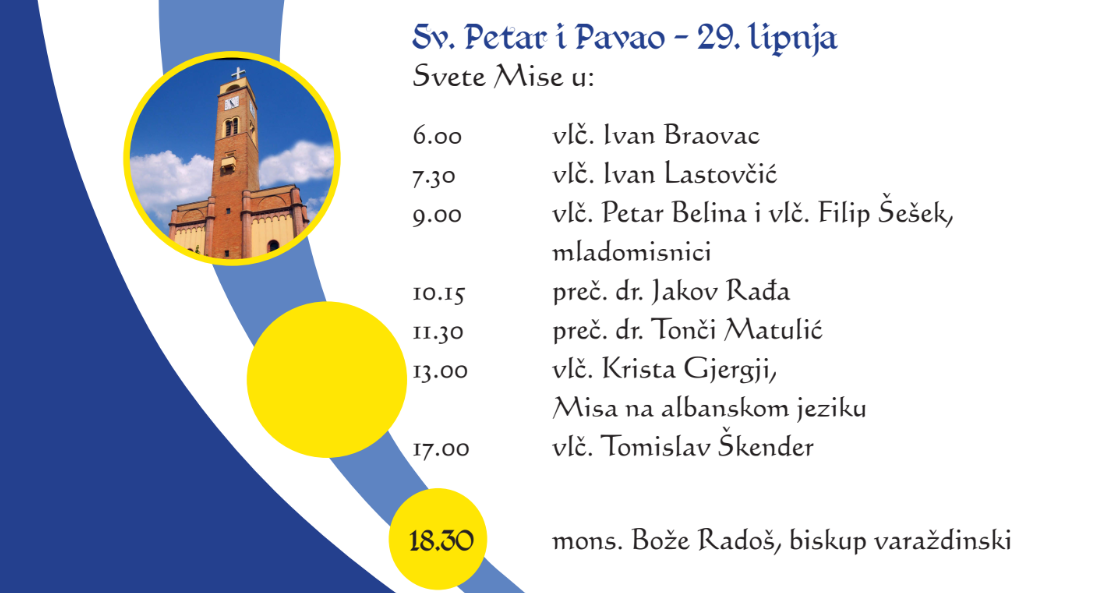 Varaždinski biskup Bože Radoš predvodit će u srijedu 29. lipnja, na svetkovinu sv. Petra i Pavla središnje euharistijsko slavlje u 18:30 u Župi sv. Petra u Zagrebu.