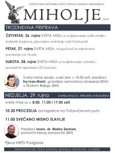 Svetkovina zaštitnika župe svetog Mihaela Arkanđela, Miholje u Gračanima u Zagrebu slavi se 29. rujna.