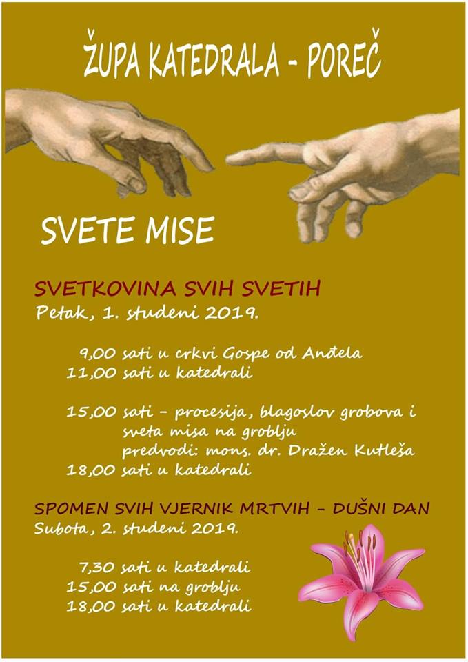Na Dušni dan, 2. studenoga, misa na porečkom gradskom groblju će biti također u 15 sati.