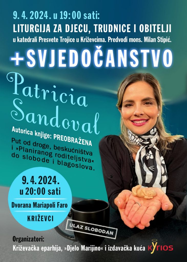 Križevci, (IKA) – Patricia Sandoval, američka pro-life aktivistica i autorica knjige „Preobražena – put od droge, beskućništva i „Planiranog roditeljstva” do slobode i blagoslova“, gostovat će u utorak, 9. travnja u Križevcima.