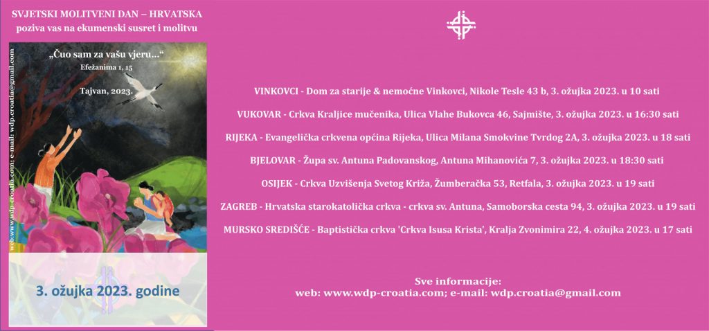 Svjetski molitveni dan – Hrvatska organizira ekumenski susret i molitvu koji će se 3. ožujka održati u više bogomolja diljem domovine.