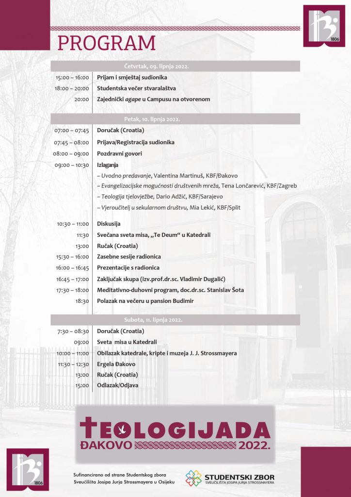 Đakovo, (IKA/TU) – Odbor za Teologijadu Studentskoga zbora Katoličkog bogoslovnog fakulteta u Đakovu uz potporu Studentskoga zbora Sveučilišta Josipa Jurja Strossmayera u Osijeku organizira drugi susret studenata teologije s teoloških učilišta iz Zagreba, Splita, Rijeke, Zadra, Mostara, Sarajeva, Ljubljane i Maribora.