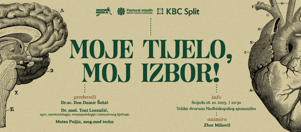 Split, (IKA) – Hrvatsko nadzemlje će u srijedu 18. listopada održati susret pod nazivom „Moje tijelo, moj izbor!“ u suradnji s Kliničkim bolničkim centrom Split. Koje su prednosti i nedostatci doniranja, može li se donirati nakon smrti, hoće li u budućnosti biti moguće uzgajati organe, samo su neka od pitanja na koja će odgovoriti gosti predavači dr. sc. Don Damir Šehić, mag. med. techn. Matea Puljiz i dr. med. Toni Lozančić, spec. anesteziologije, reanimatologije i intenzivnog liječenja. Program će se održati u Velikoj dvorani Nadbiskupskog sjemeništa u Splitu s početkom u 20:30 sati.
