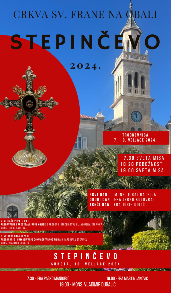 Franjevci konventualci u Samostanu sv. Frane na Obali u Splitu šestu godinu u nizu slave Stepinčevo u prisutnosti blaženikovih relikvija koje dolaze iz zagrebačke katedrale.