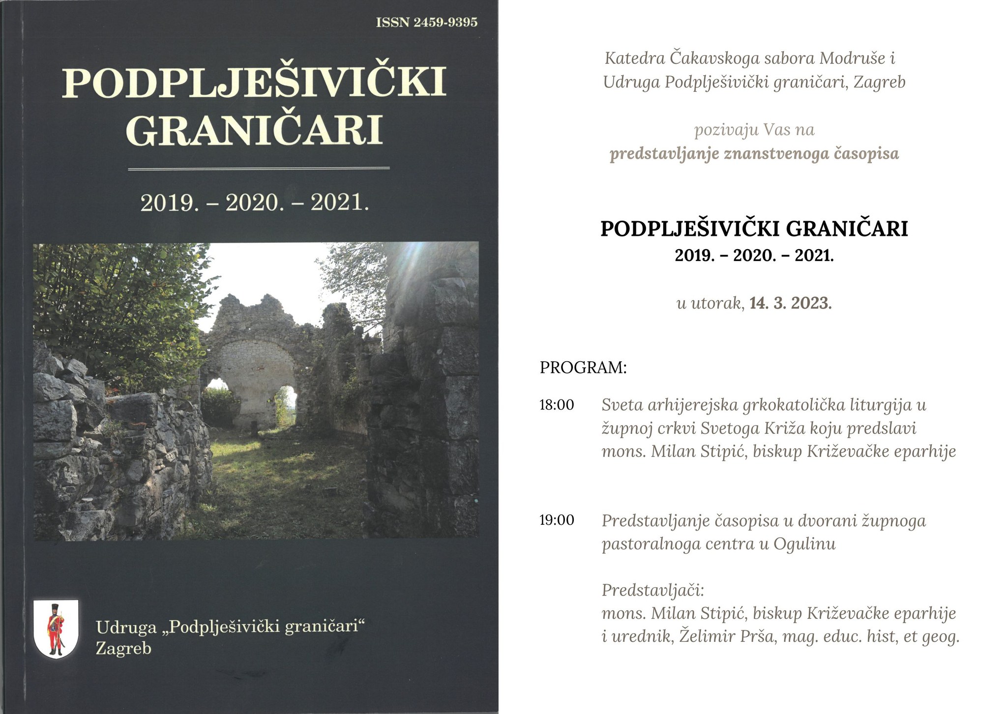 Posljednji broj znanstvenog časopisa „Podplješivički graničari“ bit će predstavljen u utorak 14. ožujka u župnoj pastoralnoj dvorani u Ogulinu. Uz urednika Želimira Pršu časopis će predstaviti križevački vladika Milan Stipić.