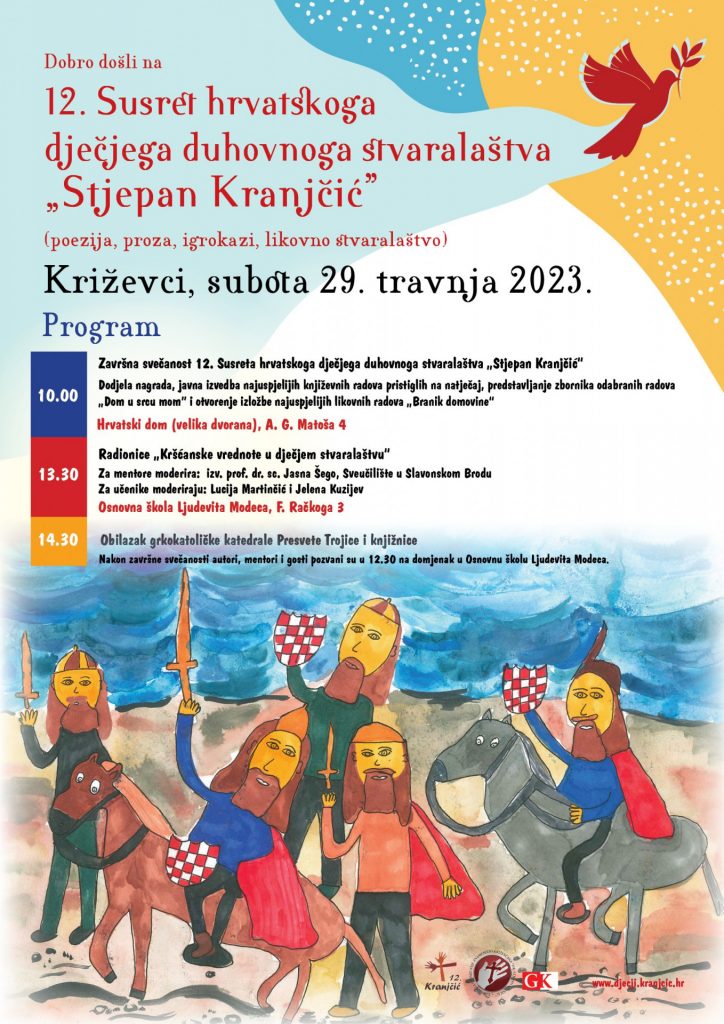 Susret hrvatskoga dječjeg duhovnog stvaralaštva „Stjepan Kranjčić” jedini je natječaj i susret za dječje duhovno književno i likovno stvaralaštvo na nacionalnoj razini u Republici Hrvatskoj za djecu osnovnih škola. Nazvan je prema križevačkom župniku na glasu svetosti Stjepanu Kranjčiću koji je i sâm pisao književne radove katoličke tematike. Organizatori su raspisali natječaj na krilima uspješnoga natječaja i književnoga susreta za duhovnu književnost na nacionalnoj razini za odrasle – Susreta hrvatskoga duhovnog književnog stvaralaštva „Stjepan Kranjčić” koji će ove godine biti održan petnaesti put. Dječjim susretom „Stjepan Kranjčić” želi se potaknuti stvaranje suvremenih dječjih duhovnih književnih (poezija, proza, igrokazi) i likovnih radova protkanih kršćanskim vrednotama. Organizatori su predložili da tema dvanaestoga natječaja bude „domovina“.