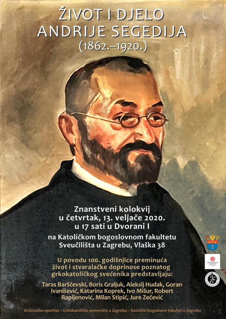 Zagreb, (IKA) – Znanstveni kolokvij „Život i djelo Andrije Segedija (1862.-1920.)“ u povodu 100. obljetnice smrti održat će se u četvrtak 13. veljače u 17 sati u Dvorani I Katoličkoga bogoslovnog fakulteta Sveučilišta u Zagrebu, Vlaška 38, u organizaciji Križevačke eparhije, Grkokatoličkog sjemeništa i Instituta za ekumensku teologiju i dijalog „Juraj Križanić“ Katoličkoga bogoslovnog fakulteta Sveučilišta u Zagrebu.