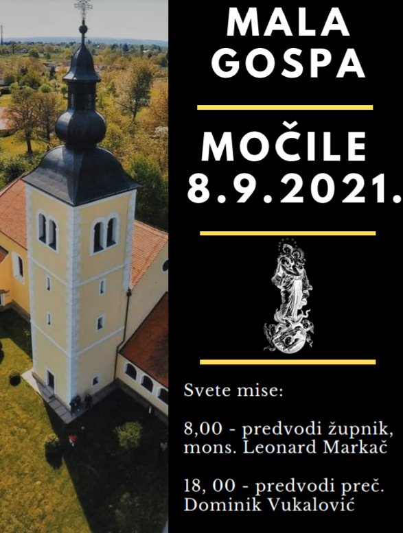 KOPRIVNICA (IKA) – Blagdan Rođenja Blažene Djevice Marije – Mala Gospa – svečano će se proslaviti u srijedu 8. rujna u Župi Uznesenja Blažene Djevice Marije te u svetištu Majke Božje Močilske u Koprivnici.
