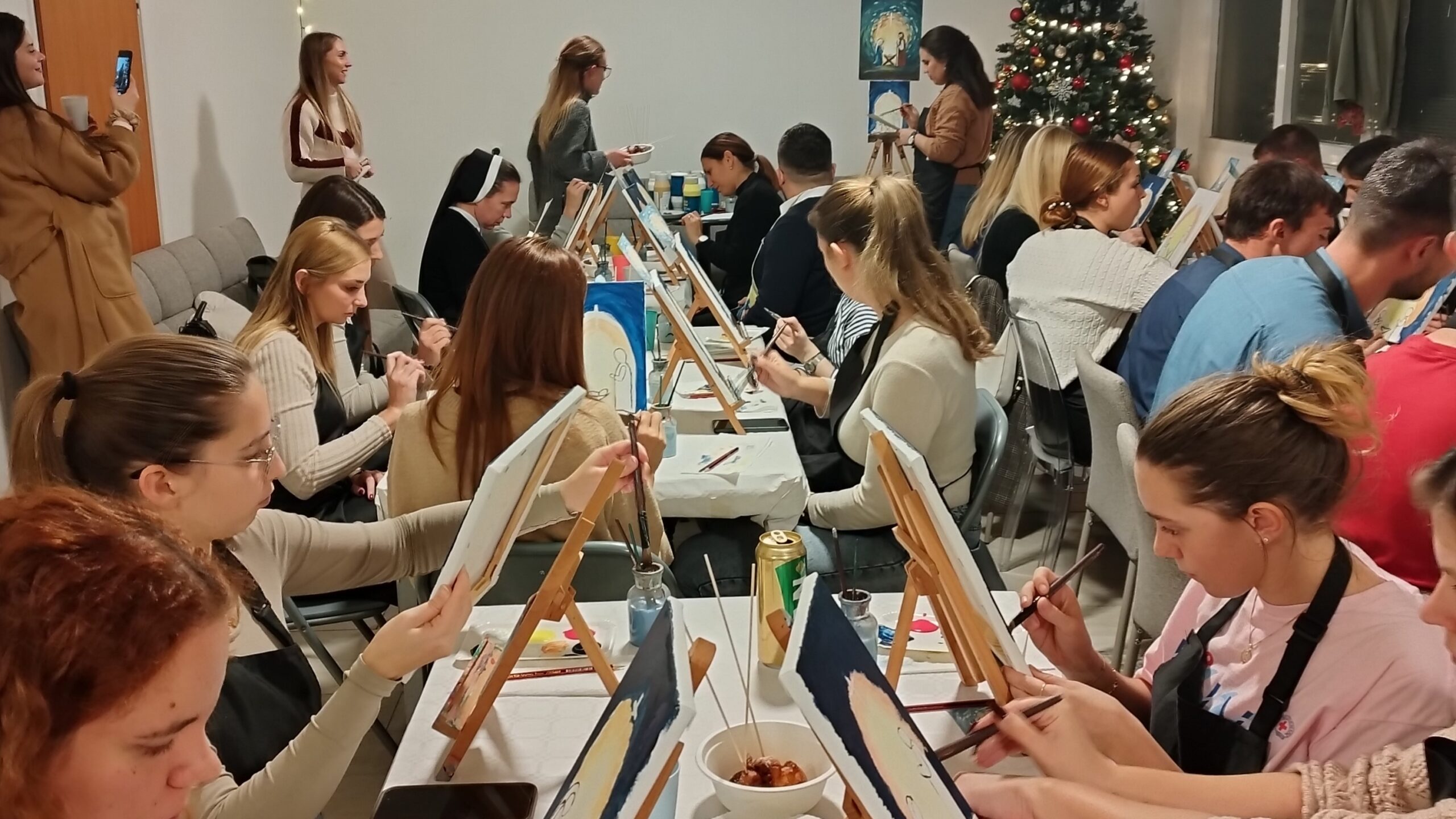 Program za mlade u riječkom Centru za mlade „Bl. Miroslav Bulešić“ započeo je 3. prosinca večeri „wine and paint“ pod vodstvom likovne pedagoginje Kristine Perković. Sudionici su crtali jaslice i usavršavali likovne tehnike, dok su pripremali fritule i druge adventske slastice, stvarajući prigodnu božićnu atmosferu.