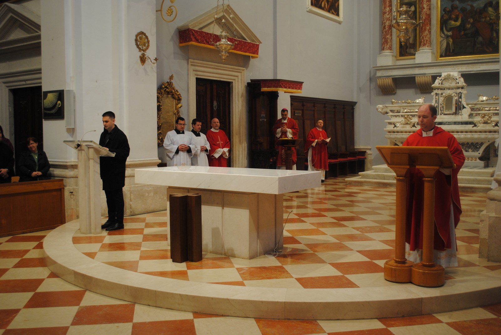 Obredi su počeli ulaznom procesijom i prostracijom ispred glavnog oltara, a završili procesijom kroz Grad u kojoj su, uz tri drvena križa, nošene i moći Isusova križa koji se čuva u moćniku katedrale.
