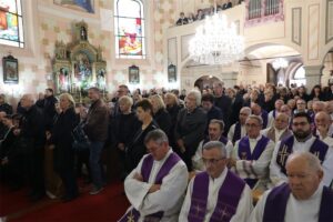 Na kraju govora p. Fridl istaknuo je kako je preč. Saboleku najdraža molitva bila molitva krunice. “Molimo iskrenim srcem da Marija, majka Isusova i majka naša, bude tješiteljica ponajprije obitelji, vjernicima Vukovine i svima koji su dragoga pokojnika voljeli. Dok svima izričemo svoje suosjećanje pri rastanku od dragog pokojnika preč. Đure, za njega molimo samo jedno: vječni pokoj u ozračju vječne dobrote u nebu.”