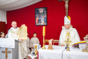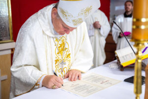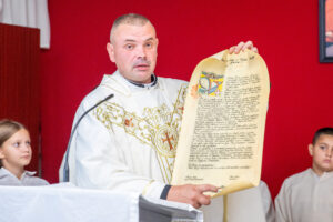 Nakon popričesne molitve, povelju o obnovi okupljenim je vjernicima pročitao vlč. Grbešić, a potom su je potpisali biskup Košić i župnik Bašić. Po završetku mise, u procesiji do župne crkve, povelja je svečano unesena i položena u njezine temelje.