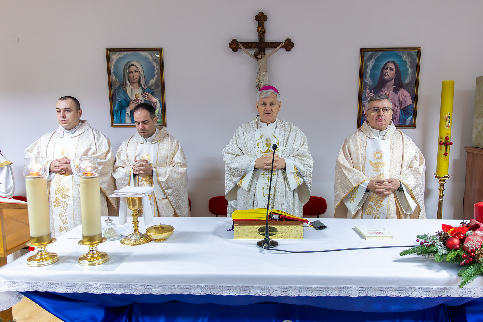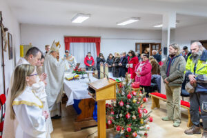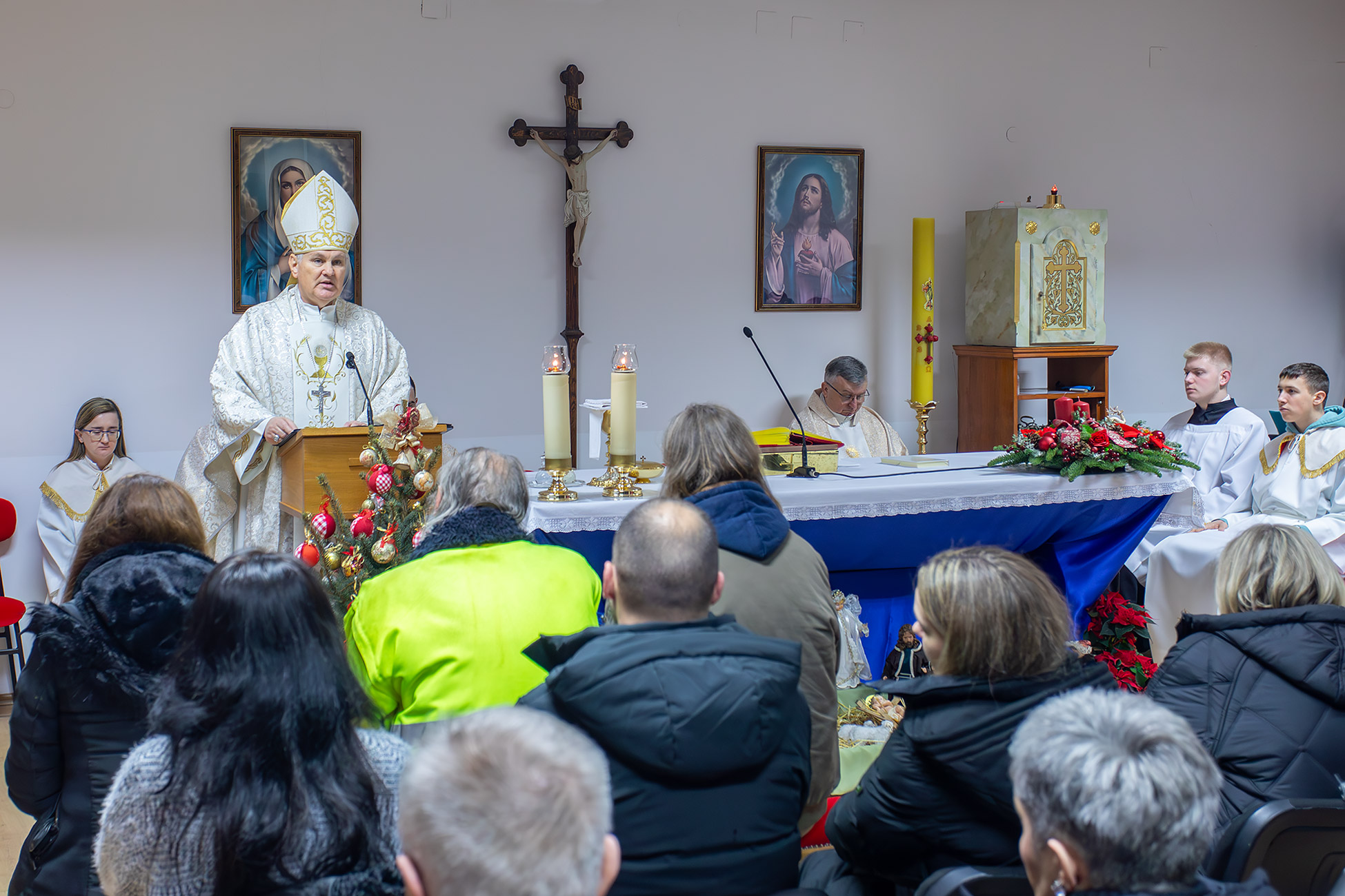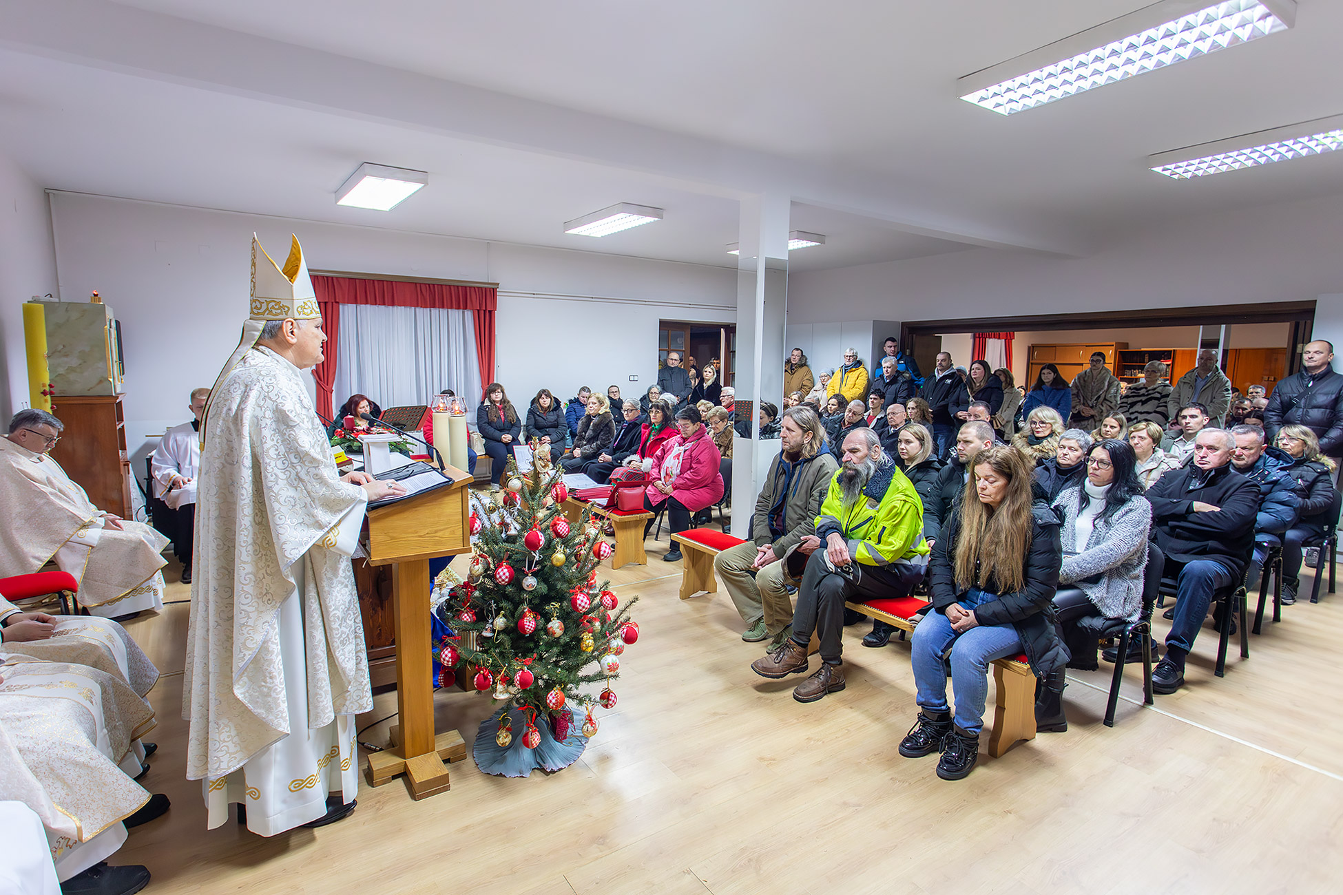 Na kraju mise, čestitavši Božić biskupu i okupljenima te zaželjevši obilje Božjeg blagoslova i mira, domaći župnik preč. Karača poručio je i neka novorođeni Isus u njihove živote unese mir, radost i nadu.