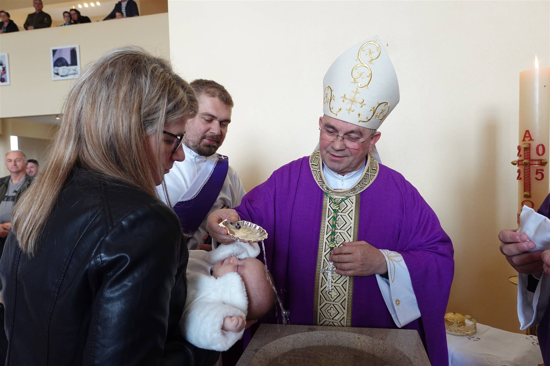 Na završetku misnog slavlja biskup je čestitao roditeljima, obiteljima i župnoj zajednici. Upozorio je na tendencije suvremenog društva koje materijalne vrijednosti stavljaju ispred ljudskog života te naveo kako je svaki život „svet i nepovrediv od trenutka začeća do naravne smrti“. Istaknuo je da je ljubav temelj obiteljskog života. „Jedini recept za uspješan brak i za ljepotu života u obitelji je ljubav“, poručio je zaključivši da ta ljubav treba biti ukorijenjena u ljubavi Krista raspetoga i uskrsloga.