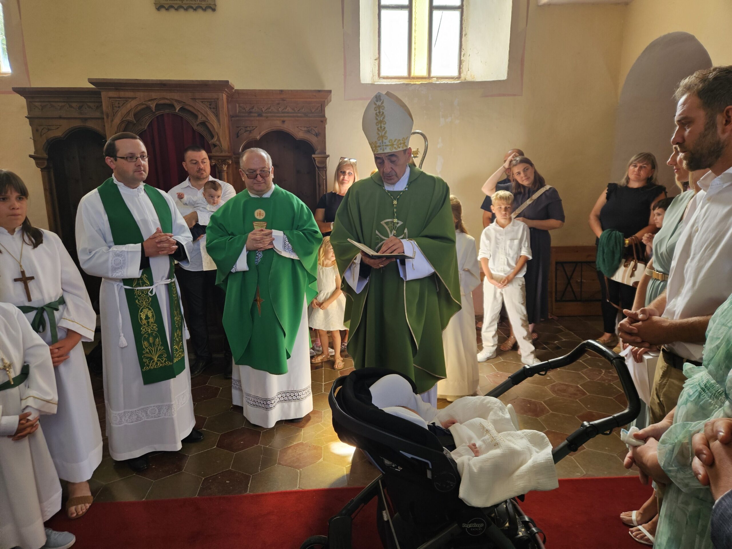 Gospićko-senjski biskup Marko Medo pohodio je u nedjelju 31. kolovoza župu Sv. Jakova apostola u Donjem Pazarištu gdje je predvodio svečano misno slavlje, tijekom kojeg je krstio malog Josipa, osmo dijete u obitelji Nikole i Martine Kolačević.