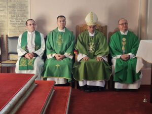 Koncelebrirali su domaći župnik vlč. Petar Šporčić, zatim Josipov ujak vlč. Željko Faltak, župnik zagrebačke župe Trnje, te kancelar i biskupov tajnik vlč. Mišel Grgurić. Uz oltar su posluživali bogoslov Marko Butković te ministranti – Josipova braća i sestre.