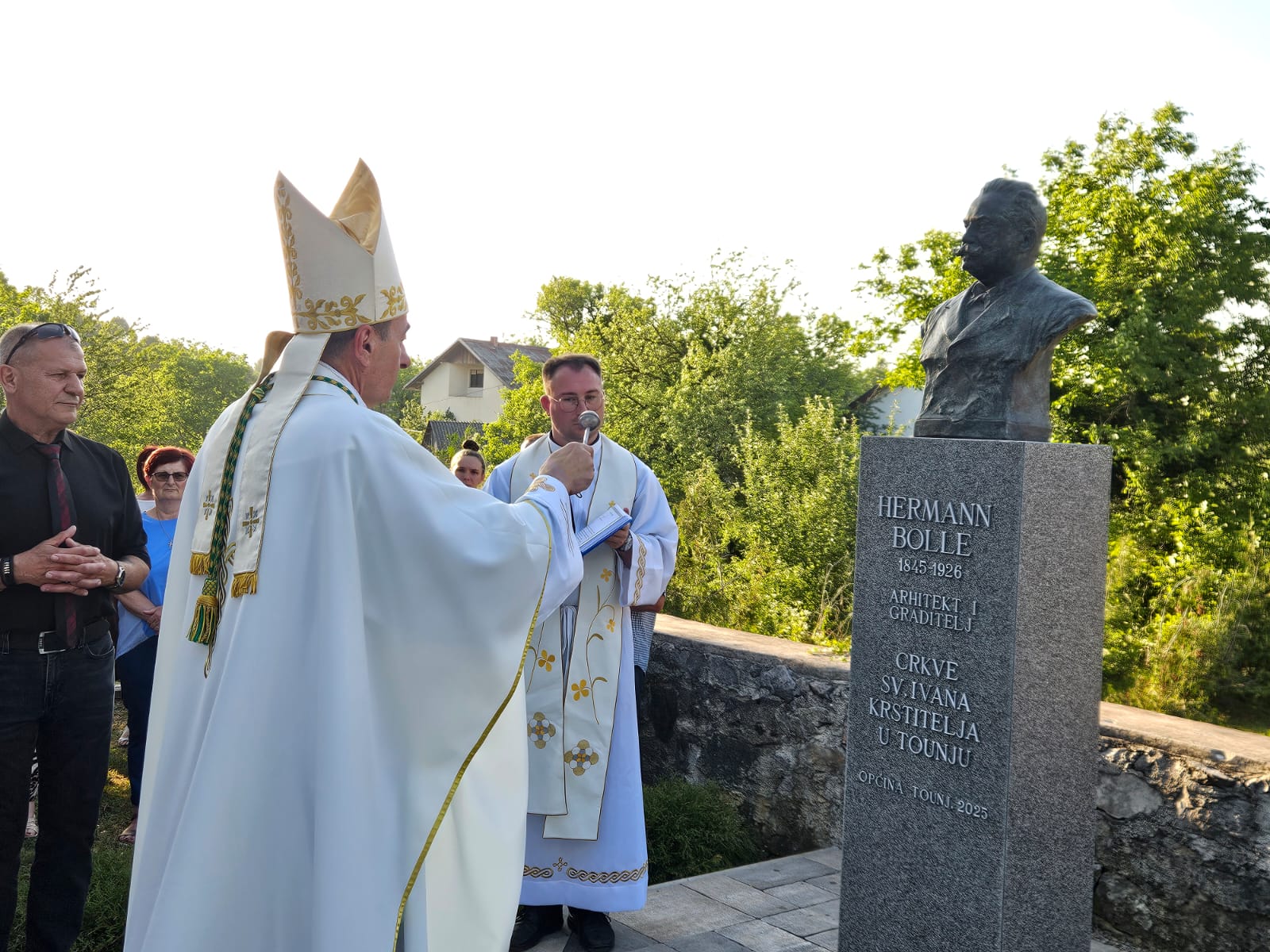 Nakon misnog slavlja mons. Medo je blagoslovio spomenik Hermannu Bolleu kojega je ispred župne crkve postavila Općina Tounj u čast slavnom arhitektu koji je projektirao i gradio crkvu u Tounju od 1886. – 1897. godine, izvijestio je Tiskovni ured Gospićko-senjske biskupije.