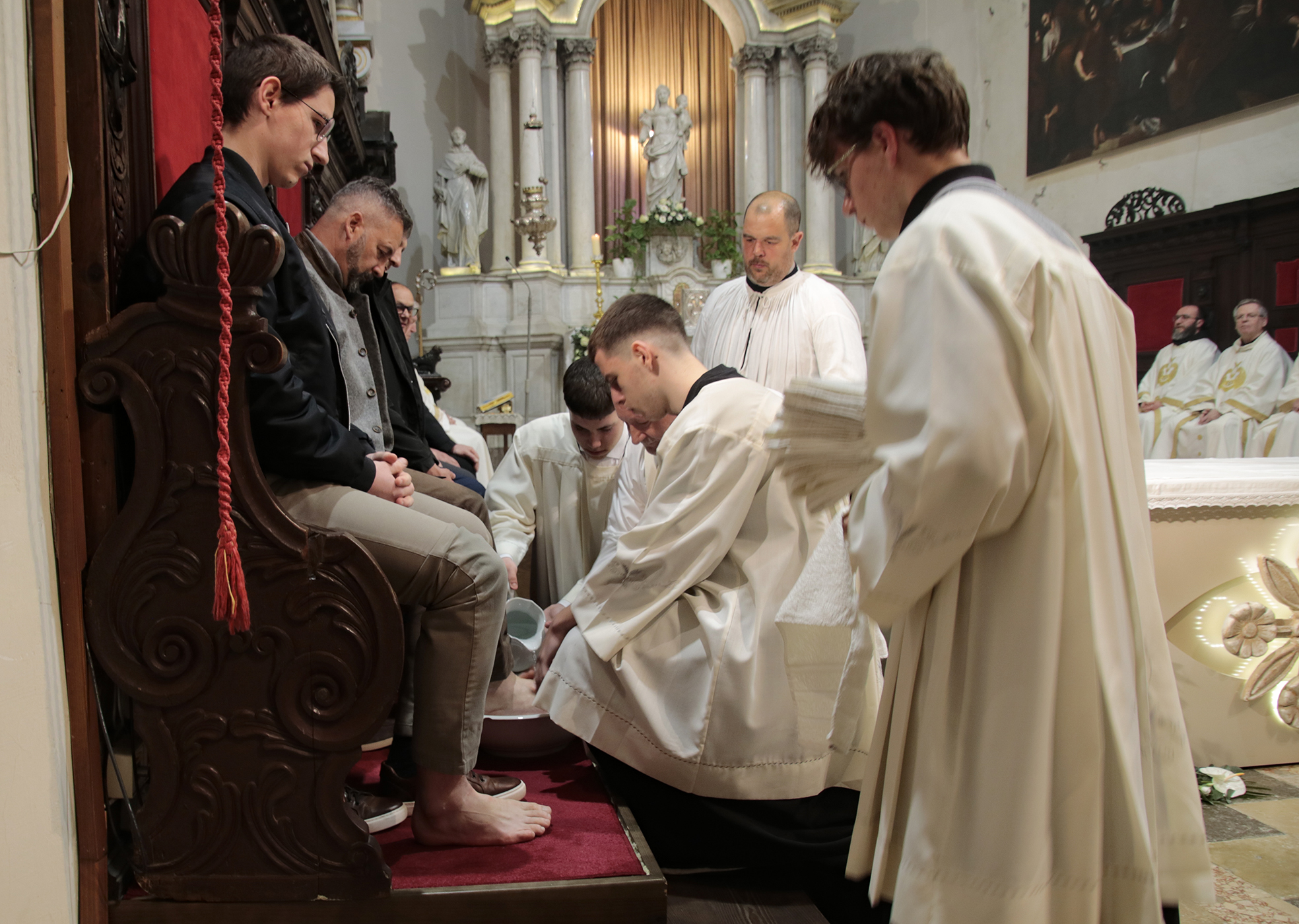Biskup Petanjak potom je objasnio čin Isusova pranja nogu učenicima. „Ovim činom Isus sve okreće naglavačke jer on im govori da ide u smrt radi njih, a oni se svađaju tko je od njih prvi, glavni, važniji. Ostavlja večeru, sagiba se do njihovih nogu i kaže: ‘Vi mene zovete Učiteljem i Gospodinom i ja to jesam. Ako ja Učitelj i Gospodin oprah vama noge onda i vi perite jedni drugima. Dao sam vam primjer’” (Iv 13,14-15).
