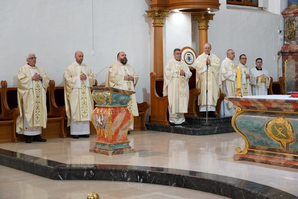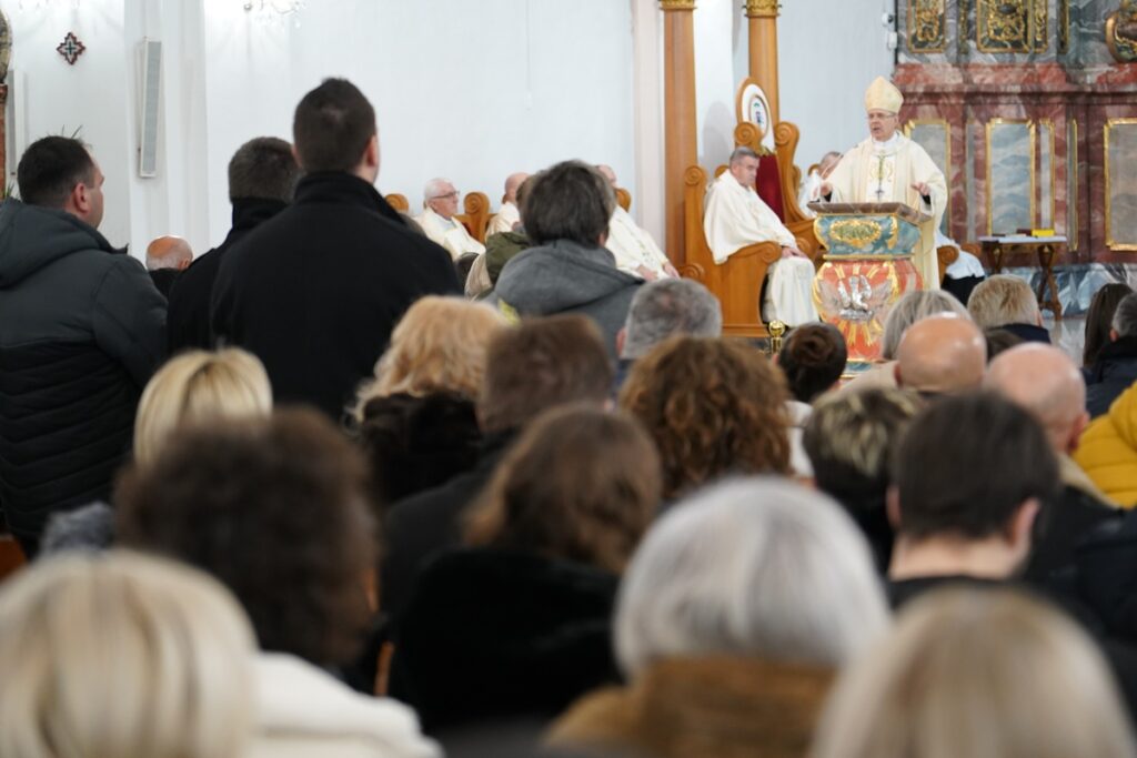 Suslavili su biskupovi najbliži suradnici u Biskupiji i umirovljeni svećenici. Na početku misnog slavlja biskup Radoš je podsjetio kako se na Božić slavi onoga Onoga koji je došao na zemlju, Isusa Krista, Boga u ljudskom obliku, u ljudskome tijelu. „Rodio se za nas jer se želi roditi u svakome od nas“, poručio je biskup i pozvao ih da najprije pripreme kolijevku u koju On može ući. A kolijevka je, pojasnio je, „naša nutrina, naše srce. Pripremimo je i sve ono što je suvišno izbacimo, napravimo i mekano mjesto, mjesto koje je prihvatljivo za Boga, odnosno koje prihvaća Boga.“