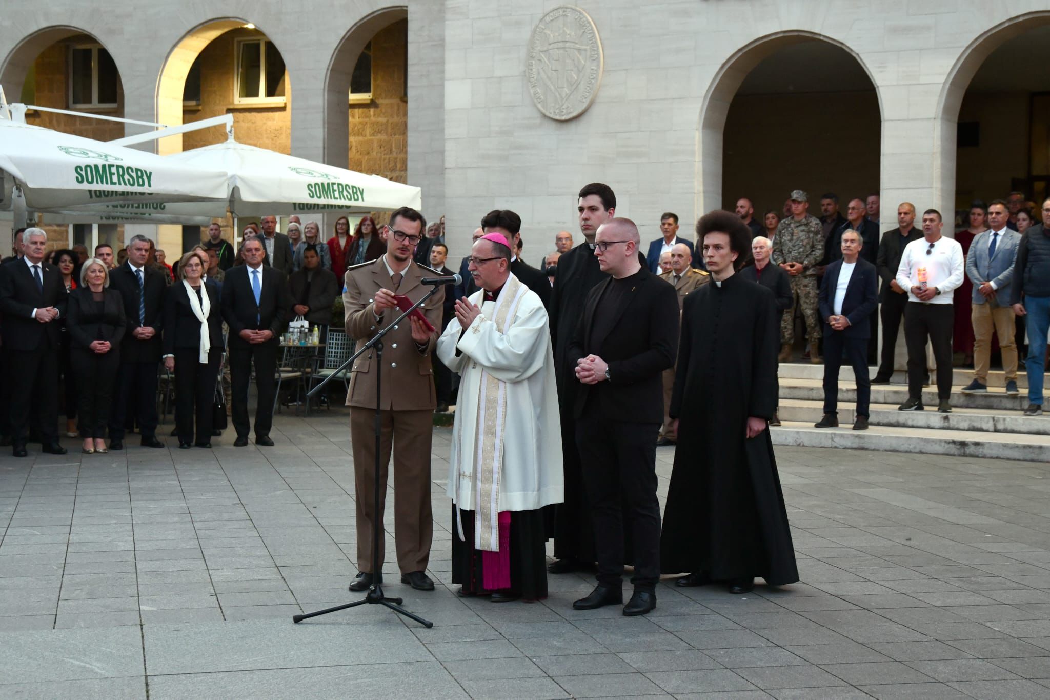 Na početku misnoga slavlja riječima pozdrava biskupu Reloti, svećenicima, predstavnicima političkoga, društvenoga i kulturnoga života, časnicima, dočasnicima vojnicima, braniteljima, obiteljima poginulih branitelja te nazočnim vjernicima obratio se biskup Palić.