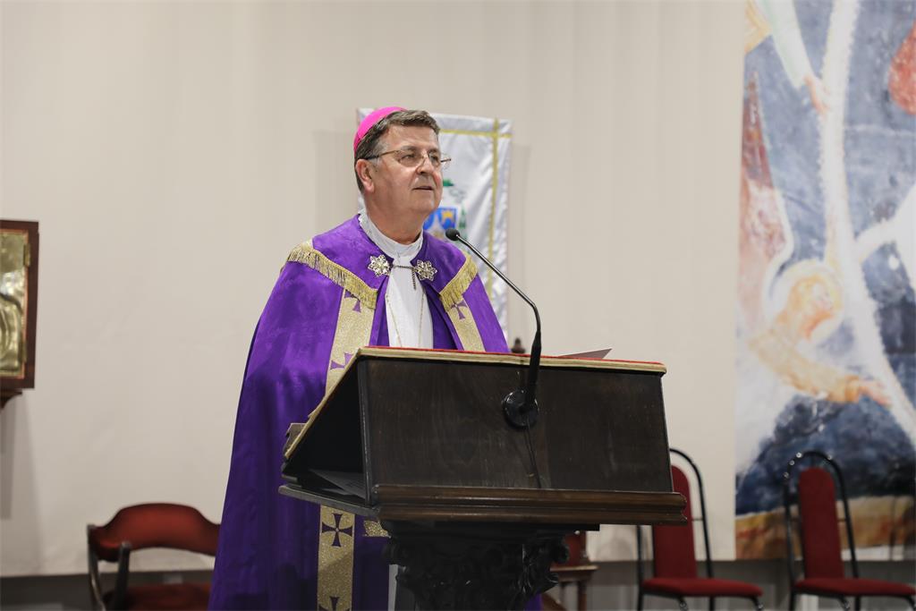 U uvodu u pobožnost križnoga puta biskup Šaško je pozdravio okupljene, naglasivši kako „stavljajući križ pred sebe, i noseći ga da bismo ga razmatrali na postajama Isusova hoda, kojim je patnju umiranja preobrazio u radost uskrsnuća, i večeras u molitvu unosimo svoje živote, život društva i domovine, život svijeta u svjetlu vječnosti. Znamo da je grijeh, odnosno odbacivanje Boga i neposlušnost Božjemu Duhu, prouzročio patnju i naznačio put do Kalvarije na kojemu čovjek iz dana u dan, ako živi bez Krista, živi tjeskobu. Nebeski je Otac u svome promislu taj put povjerio svojemu Sinu i po njemu ga nama darovao kao put novoga života. Dakle, hodeći s Kristom na Križnome putu susrećemo snagu grijeha koju prepoznajemo u grijesima: mišlju, riječju, djelom i propustom“.