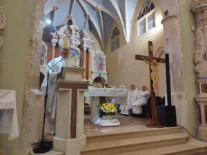 Razmišljajući nad evanđeoskim izvještajem o Isusovu ukazanju učenicima, biskup je pojasnio da pozdrav „Mir vama“ nije bio samo puka riječ, već stvarni dar prestrašenim srcima i zadaća širenja tog mira svima onima koji su u potrebi. Opisao je mir koji Krist daruje kao puninu slobode i „bonacu srca“ koja uživa u Božjoj blizini, uspoređujući taj osjećaj s Ivanom koji naslanja glavu na Isusovo srce. Biskup je istaknuo kako je kapela trajnog klanjanja prigoda da svaki vjernik osjeti bilo Kristova srca, predajući mu svoje brige i nemire u tišini. Govoreći o apostolu Tomi, primijetio je kako se „u njegovoj sumnji svi možemo prepoznati“, ali i kako Isusov blagi pogled liječi i oslobađa, jer čovjek pronalazi sebe tek u susretu s Gospodinom.