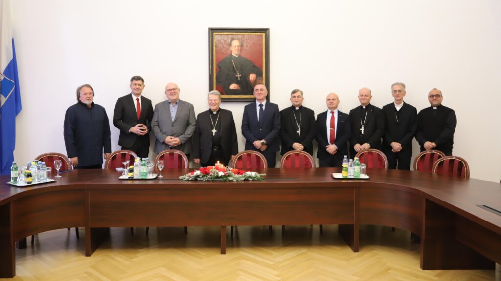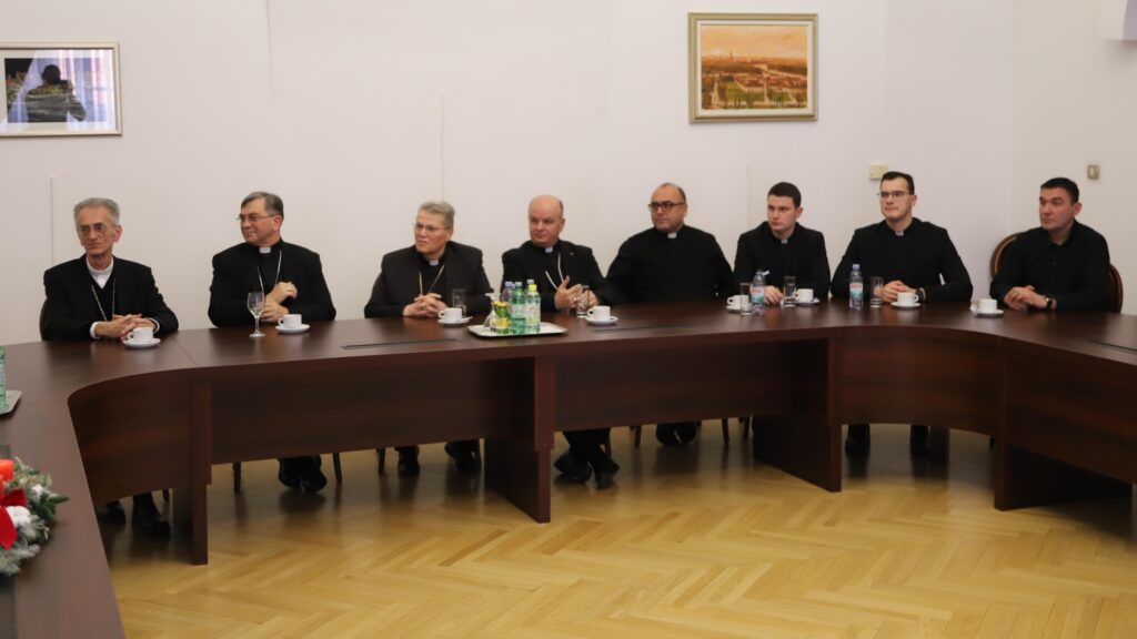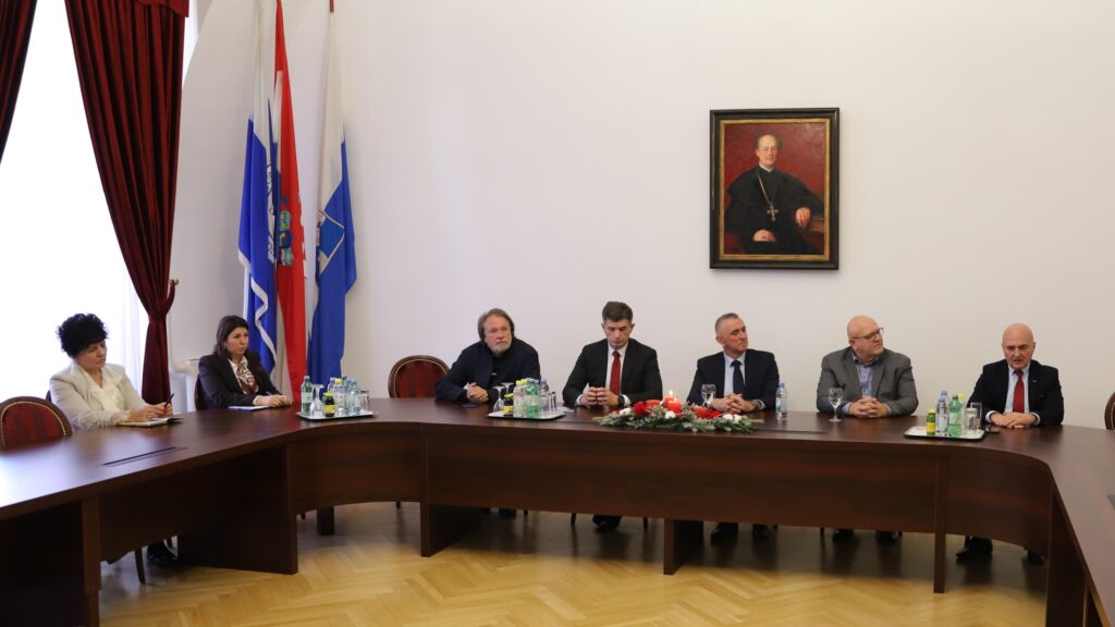 Đakovačko-osječki nadbiskup metropolit Đuro Hranić, požeški biskup Ivo Martinović, srijemski biskup Fabijan Svalina, pomoćni biskup đakovačko-osječki Ivan Ćurić te prodekan Katoličkog bogoslovnog fakulteta u Đakovu i kapelan osječkog Sveučilišta vlč. dr. sc. Davor Vuković susreli su se u prostorima rektorata s vodstvom Sveučilišta.