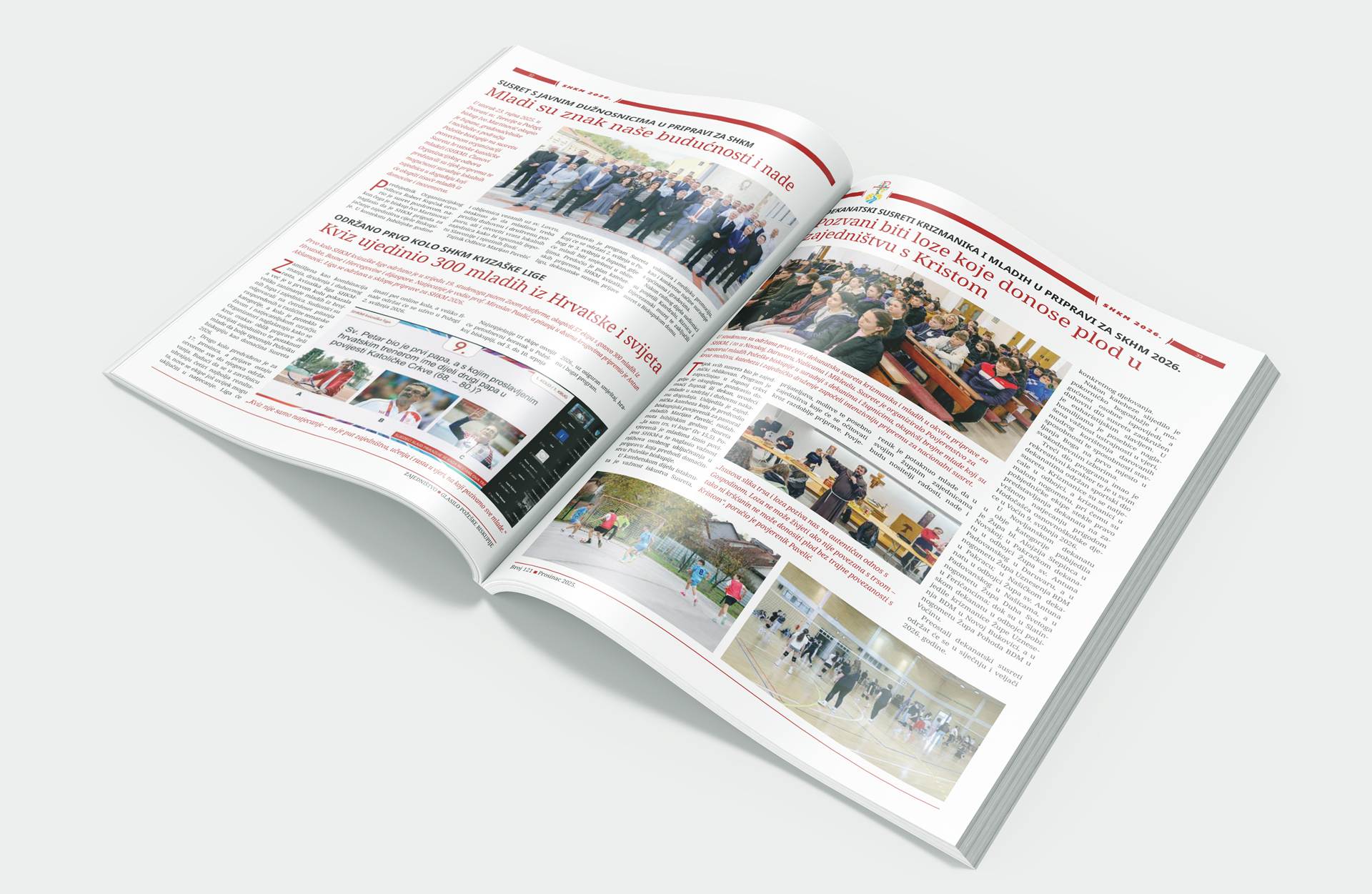 Posebno bogat sadržaj donosi rubrika „Iz života mladih“: od otvorenja Katoličke malonogometne lige Požeške biskupije, preko festivala „Hodočašće u došašće“ u Pakracu, dok u rubrici „SHKM 2026.“ čitatelji mogu pronaći izvještaje o održanom prvom kolu SHKM kvizaške lige te o dekanatskim susretima krizmanika i mladih u pripravi za Susret hrvatske katoličke mladeži u Požeškoj biskupiji.