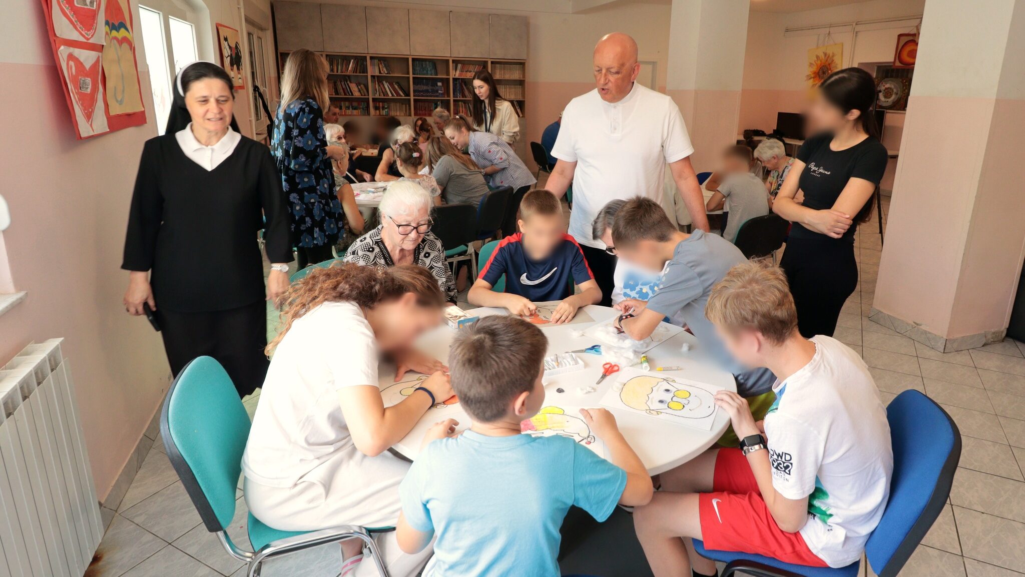 Druženje je nastavljeno uz radionice koje su organizirali korisnici i zaposlenici Caritasove Kuće sv. Franje, a uz zajednički objed završilo je razmjenom zagrljaja i darova. Djeca su na dar dobila diplome, a starije osobe po jedan primjerak prigodne molitve.