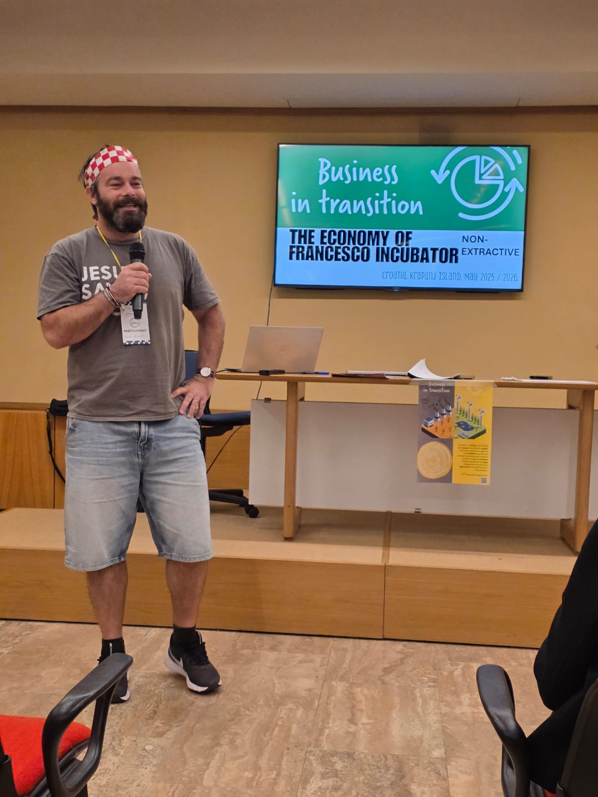 Drugog dana program je nastavljen duhovnim nagovorom te radionicama za mlade. Dr. Bruno Petrušić je ispred Huba Hrvatska, a u suradnji s inozemnim partnerima iz „Sela“ Poslovanje u tranziciji, predstavio radionicu „Od ekstraktivnih do neekstraktivnih poslovnih modela“.