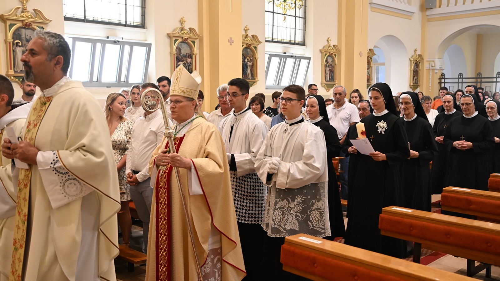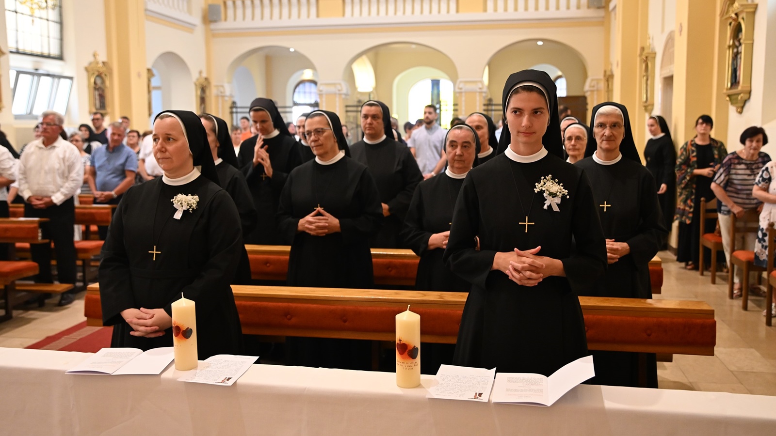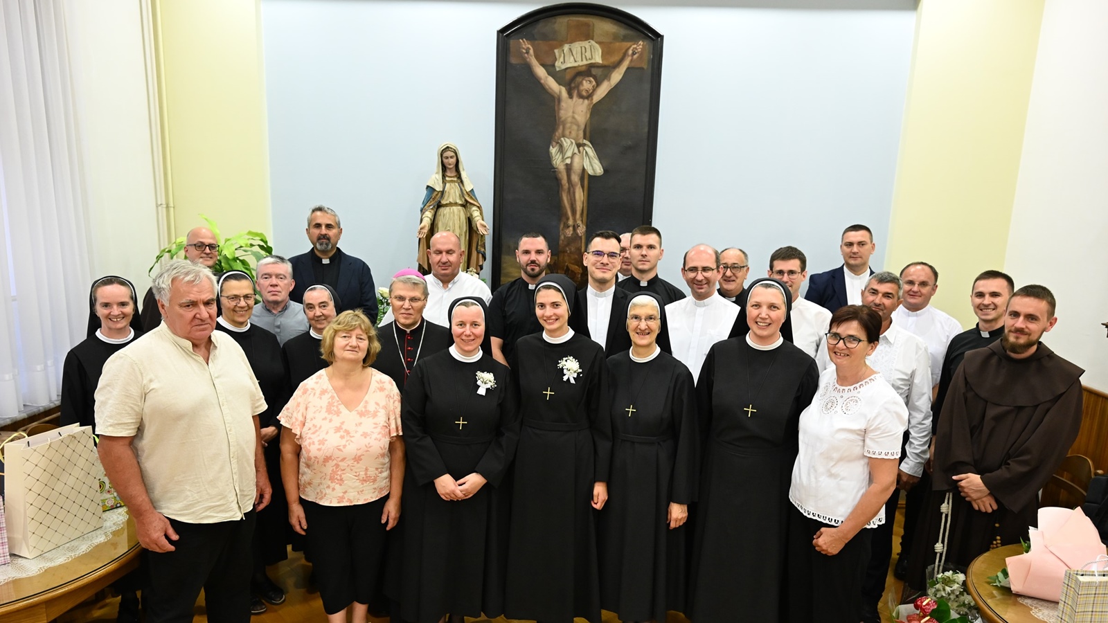 Mons. Hranić na kraju je zaključio: „I taj cjeloživotni izbor siromaštva duhom, čistoće srca i tijela te poslušnosti i milosrđa je, drage sestre zavjetovanice, već neki predokus vječnosti jer samo je Bogu vlastito da on bude vjeran, da ustrajava u ljubavi i ne odustaje od svoga izbora. I taj vaš cjeloživotni izbor koji se danas artikulira i kao vaši doživotni zavjeti siromaštva, čistoće i poslušnosti u zajednici Milosrdnih sestara sv. Križa za sve je nas znak blizine Božje među nama i njegove milosti koja po vama dvjema djeluje u ovome svijetu sebičnosti, neovisnosti o bilo kome – pa i o bračnom drugu i vlastitoj djeci, što danas sve češće susrećemo traženje lagodnoga života ‘na visokoj nozi’, uživanja i vlastite ugode. To je izbor koji otvara vrata vječnosti i zato se može reći da su i ovi zavjeti ne samo doživotni, nego i vječni, premda ih – vi, drage sestre – polažete vi koje živite na zemlji, a ne na nebu. Ali, ostanite drage sestre, u vjernosti Gospodinu, u osobnoj povezanosti s njim, koja svaki dan treba postajati sve dublja. Vi same vidite, lakše se postaje Milosrdnom sestrom sv. Križa nego da se ustrajno ostaje u tom poslanju, pozivu biti Milosrdna sestra sv. Križa. I ako budete ustrajne u tom izboru milosrđa, onda vam takav vaš izbor zasigurno otvara vrata vječnosti.“