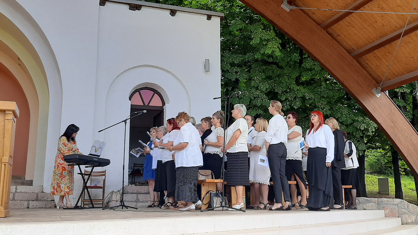 Pjesme prije mise kod oltara na otvorenom i za vrijeme mise predvodio je Zbor Baranjskih Hrvata u Mađarskoj, uz pratnju prof. Aleksandre Čeliković Cvidrak, kojima se biskup zahvalio za predivno pjevanje. Poslije mise vjernici su zajedno molili križni put pod vodstvom vlč. Ladislava Bačmaija, a čitali su i pjevali vjernici iz Harkanja i Salante.