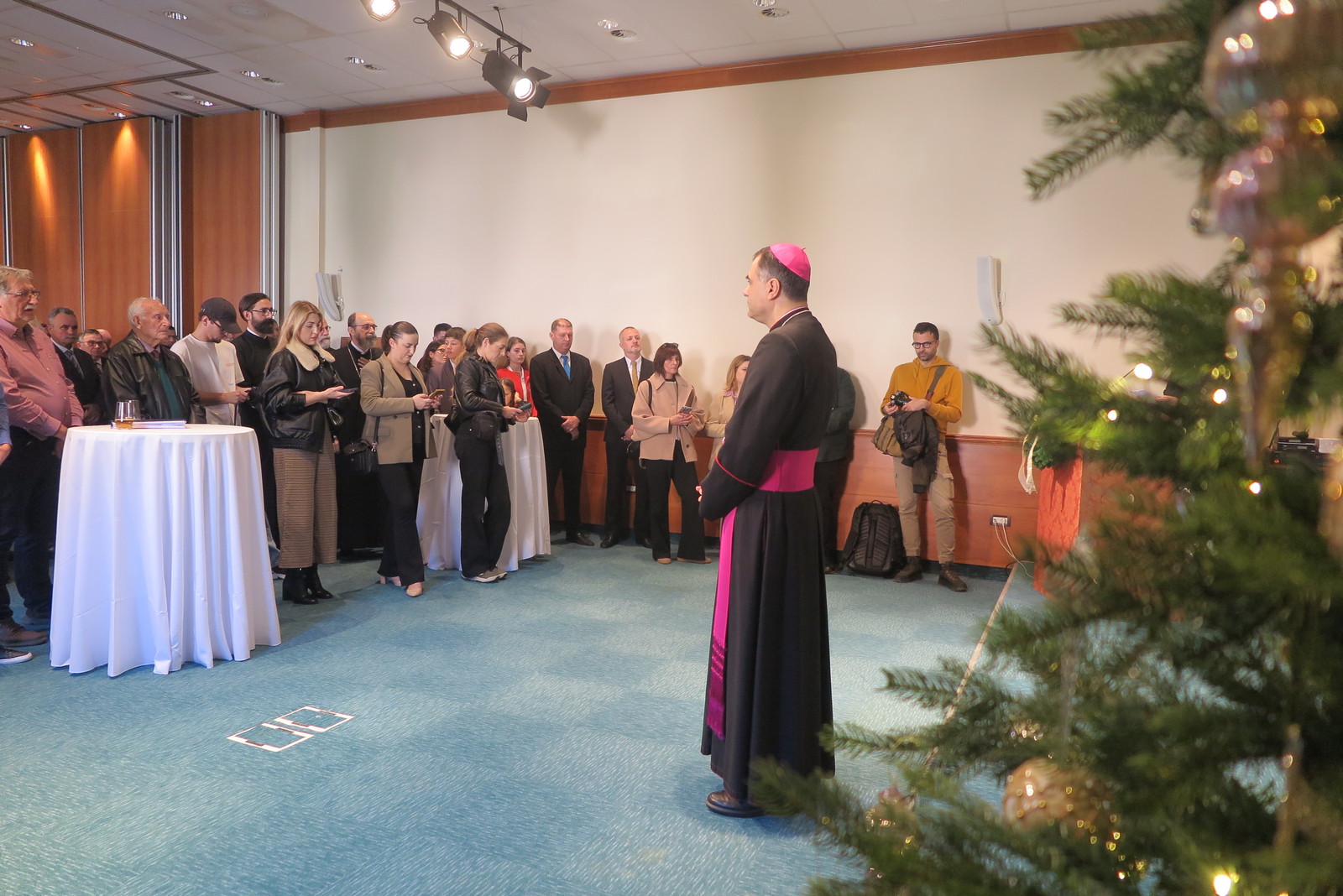 Prigodnu riječ na početku susreta uputio je generalni vikar mons. Ivica Pervan koji se osvrnuo na vrijeme došašća i značenje četiriju adventskih svijeća koje pozivaju na duhovnu pripravu za Božić. Spomenuo je i Jubilejsku godinu, Godinu nade koja je na izmaku, rekavši kako sjećanje i nada nerazdvojno idu zajedno te kako tko “otruje prošlost, ne daje nadu, nego razara njezine duševne temelje i teško može graditi sretniju budućnost“.